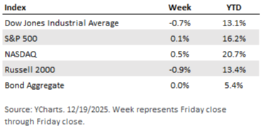 The markets reacted positively to the Fed’s interest rate decision and commentary on the economy and policy outlook, along with news of resuming Treasury Bill purchases to support liquidity in short-term money markets. The central bank concluded the final meeting of the year by delivering a third straight 25 basis-point (0.25%) cut to the federal funds policy rate, which was widely anticipated, and announced updated projections for economic indicators and the policy outlook.2