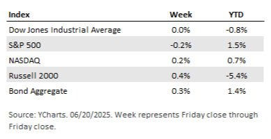 The equities market reacted little to the news and finished the week roughly flat, with some impact from geopolitical tensions. For the week, the Dow Jones remained unchanged, the S&P 500 was down 0.2%, while the Nasdaq Composite was up 0.2%.
