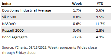For the week, the S&P 500 increased 0.9%, the blue-chip Dow advanced 1.7%, and the tech-heavy Nasdaq gained 0.8%.