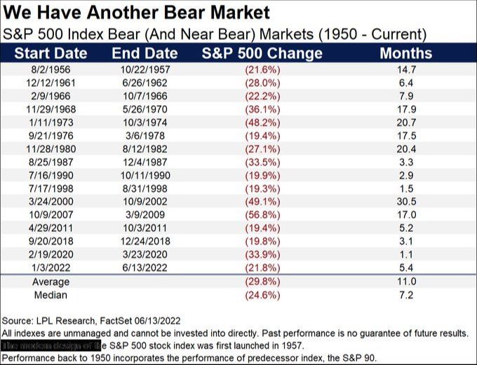 All the bear and near bear markets since 1950.